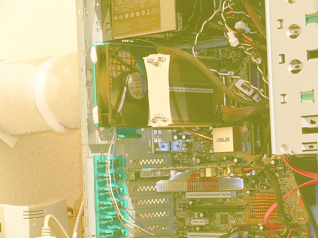 Asus P5B deluxe; Core 2 Duo 2400; Kühler: Thermalright Ultra90-775, ohne Fan Gehäuselüfter 12 cm, 2200 U/min 3 h nach ArcticSilver5; Ta= 18.6 °C Vcore_leer= 1.14 V, Vcore_last= 1.28 V Belastung durch Prime95: 2 x 900 MB RAM / 1 x 1800 MB RAM |