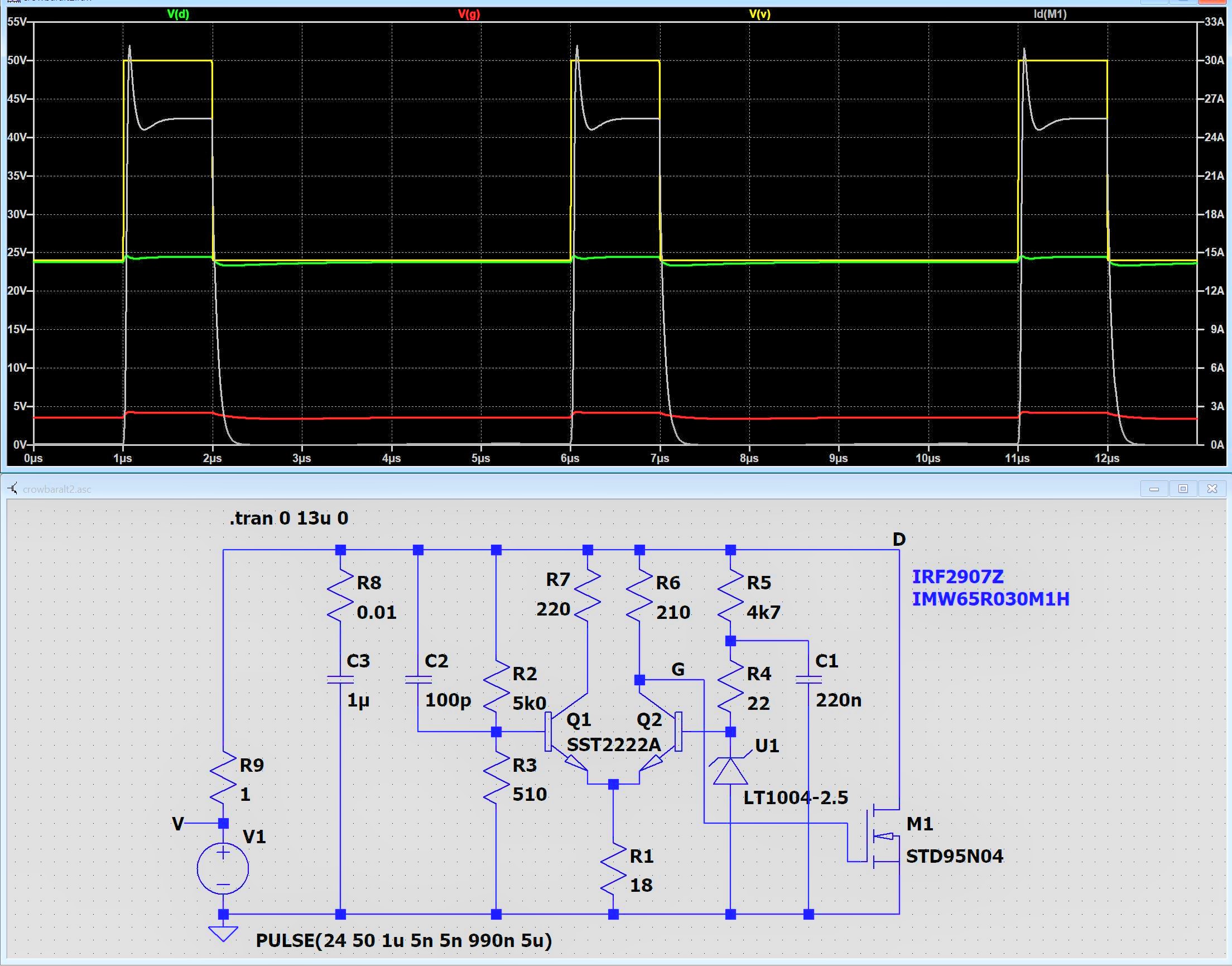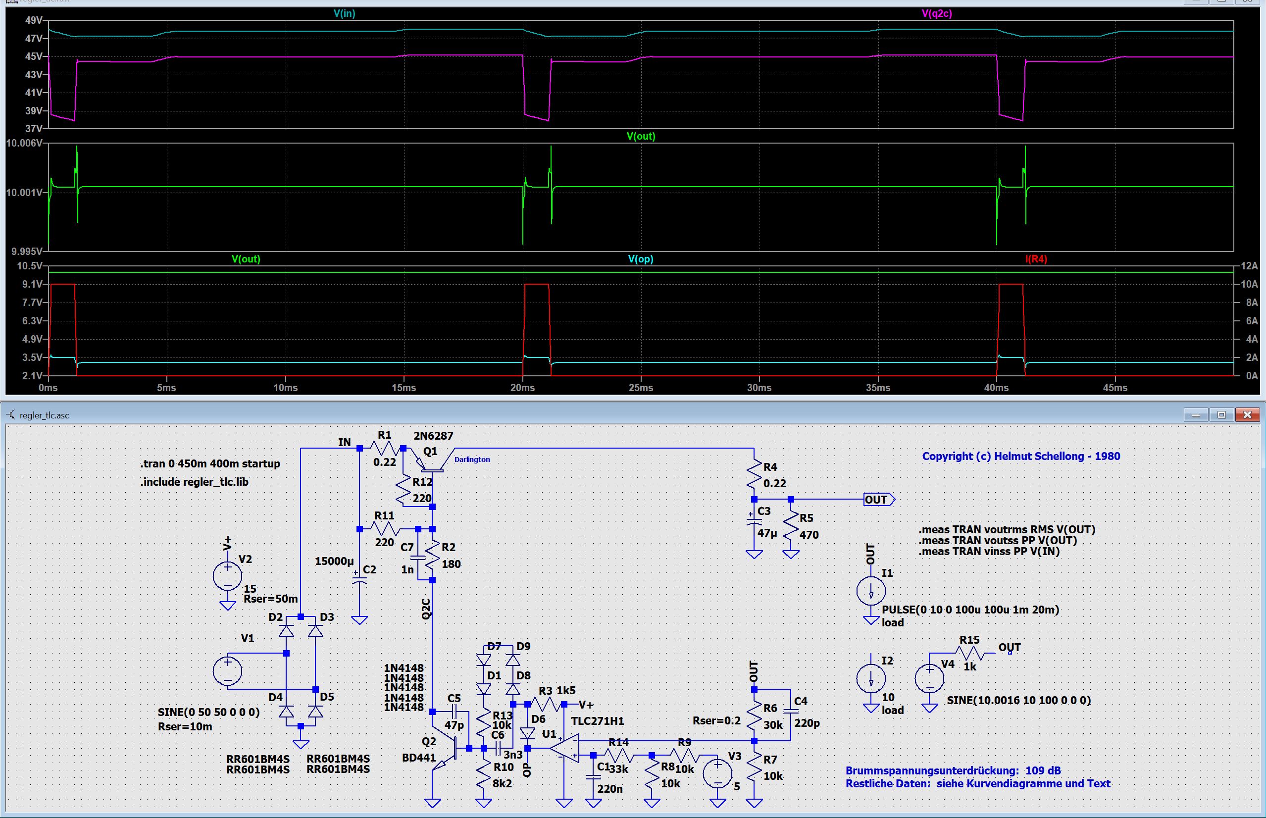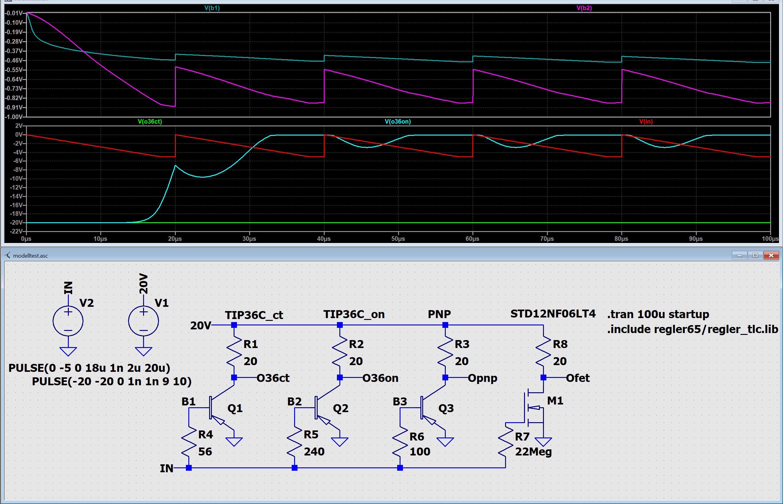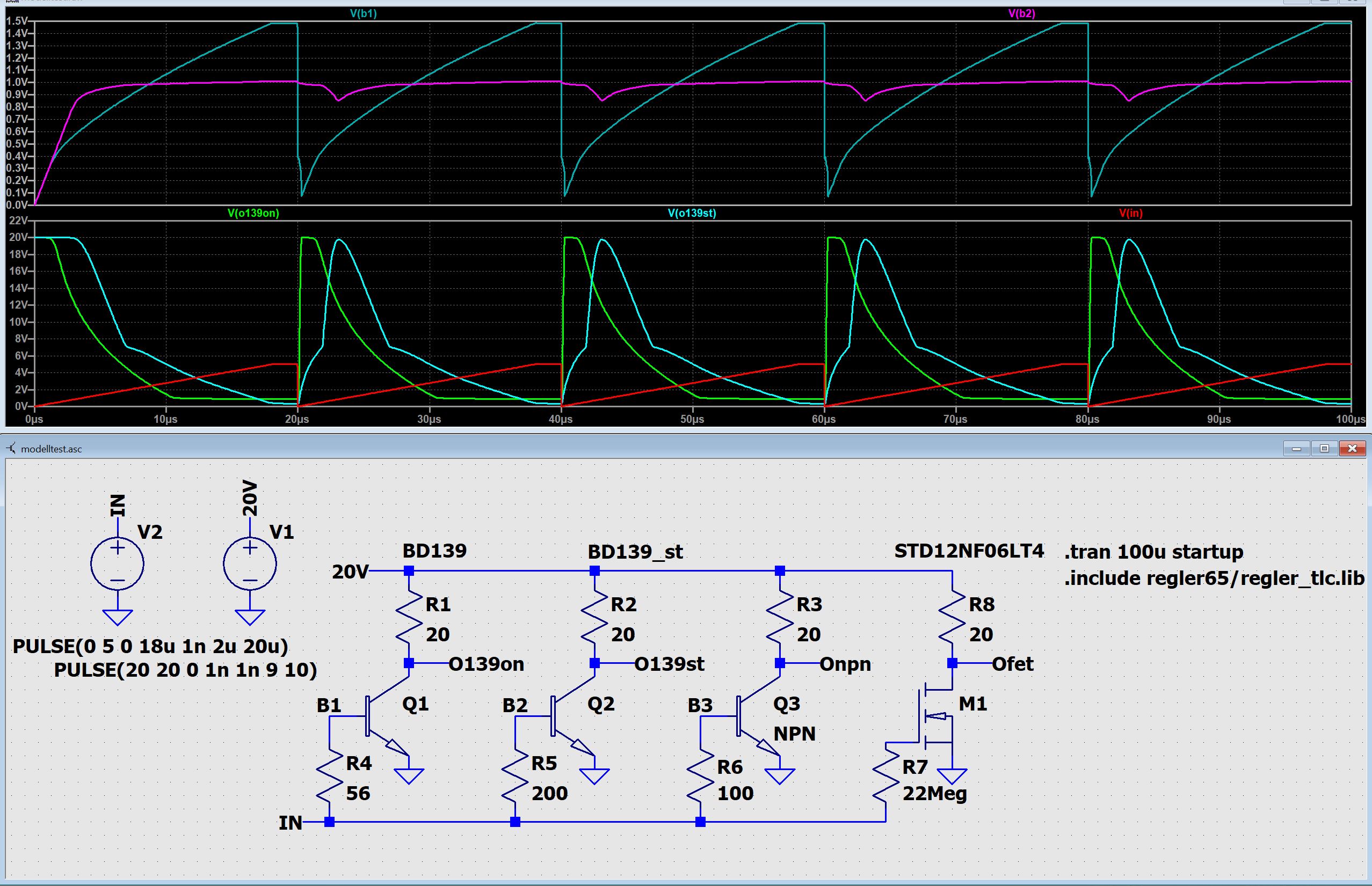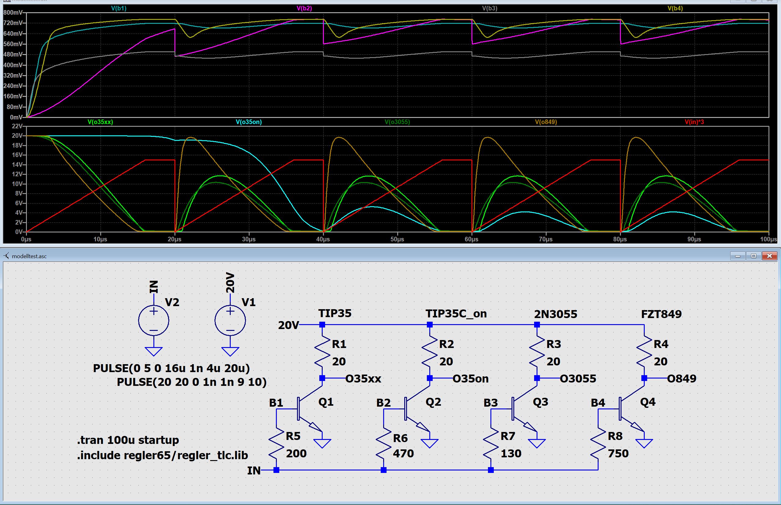 Zusätzlich wurden aus der Library von LTspice die Typen 2N3055 und FZT849 angefügt.