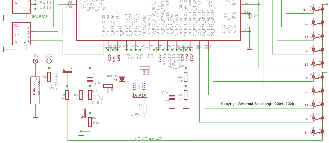 Die Ansteuerung per R4 und R5 wurde so gewählt, daß die Stromverstärkung