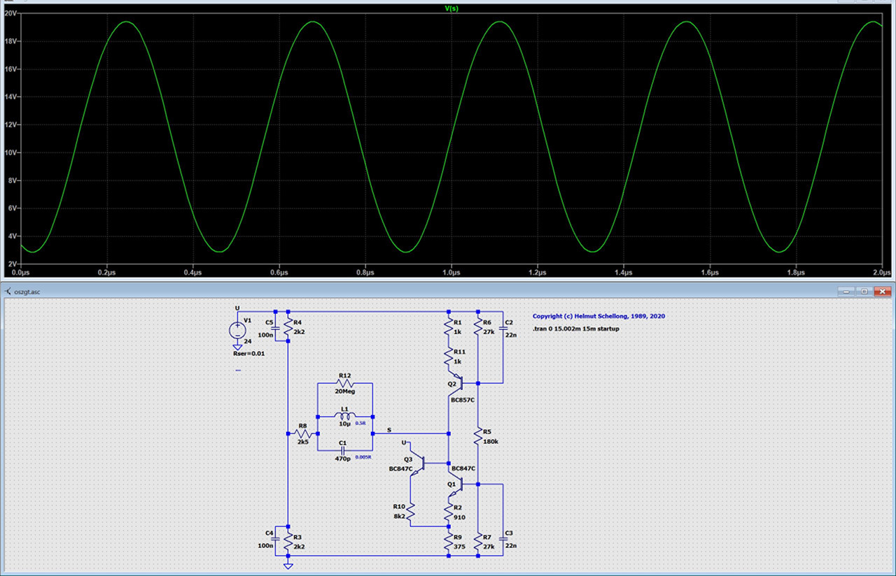 Dieser Oszillator hat eine extrem hohe Sensitivität. Beim anderen Oszillator weiter oben bewirkt der bedämpfende Widerstand mit 100 kΩ keine merkliche Dämpfung. Bei diesem Oszillator ist R12 mit 20 MΩ gerade eben außerhalb einer sichtbaren Bedämpfung.