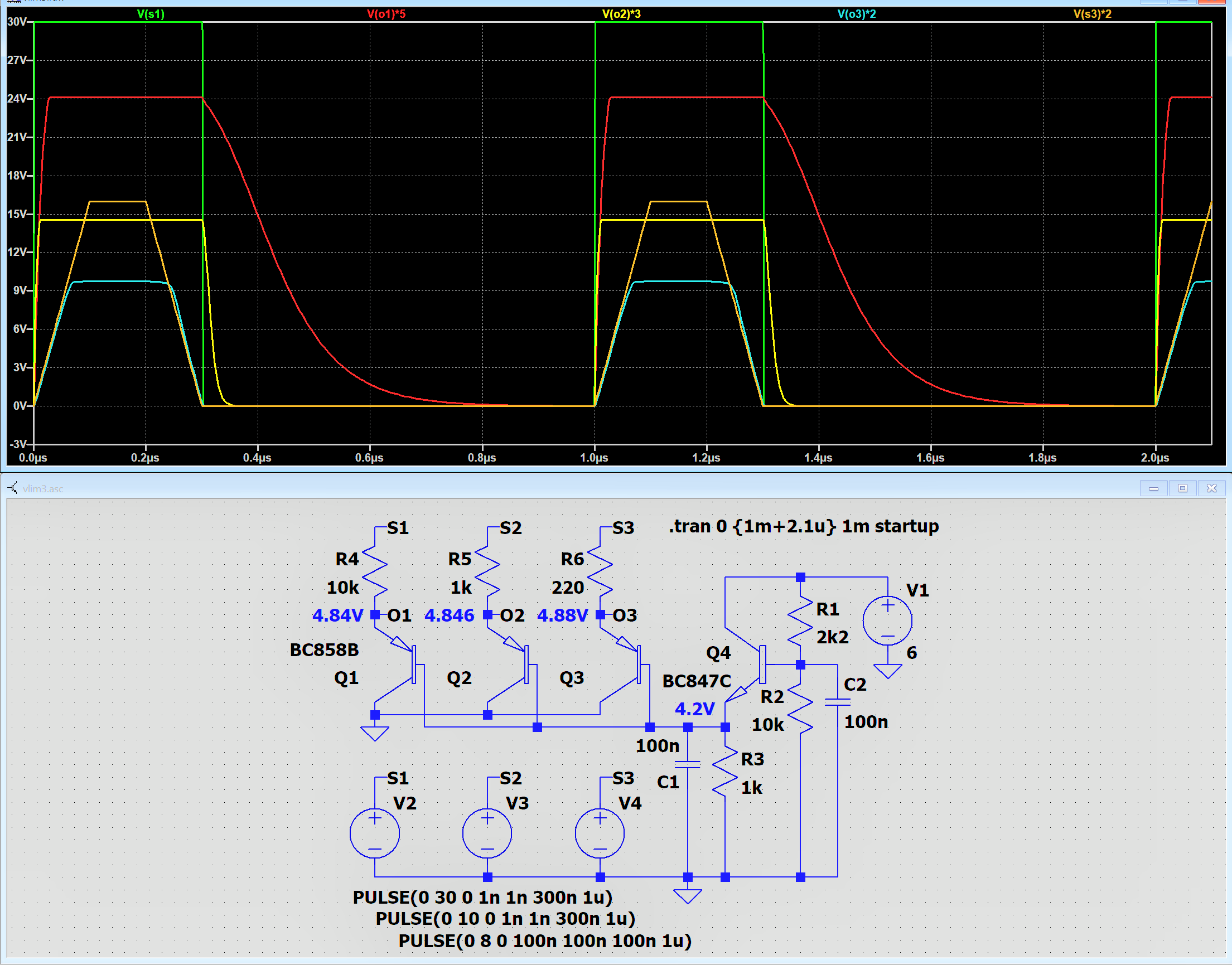 Q2 fällt mit seiner wirklich extrem trägen Ausgangsspannung auf.
