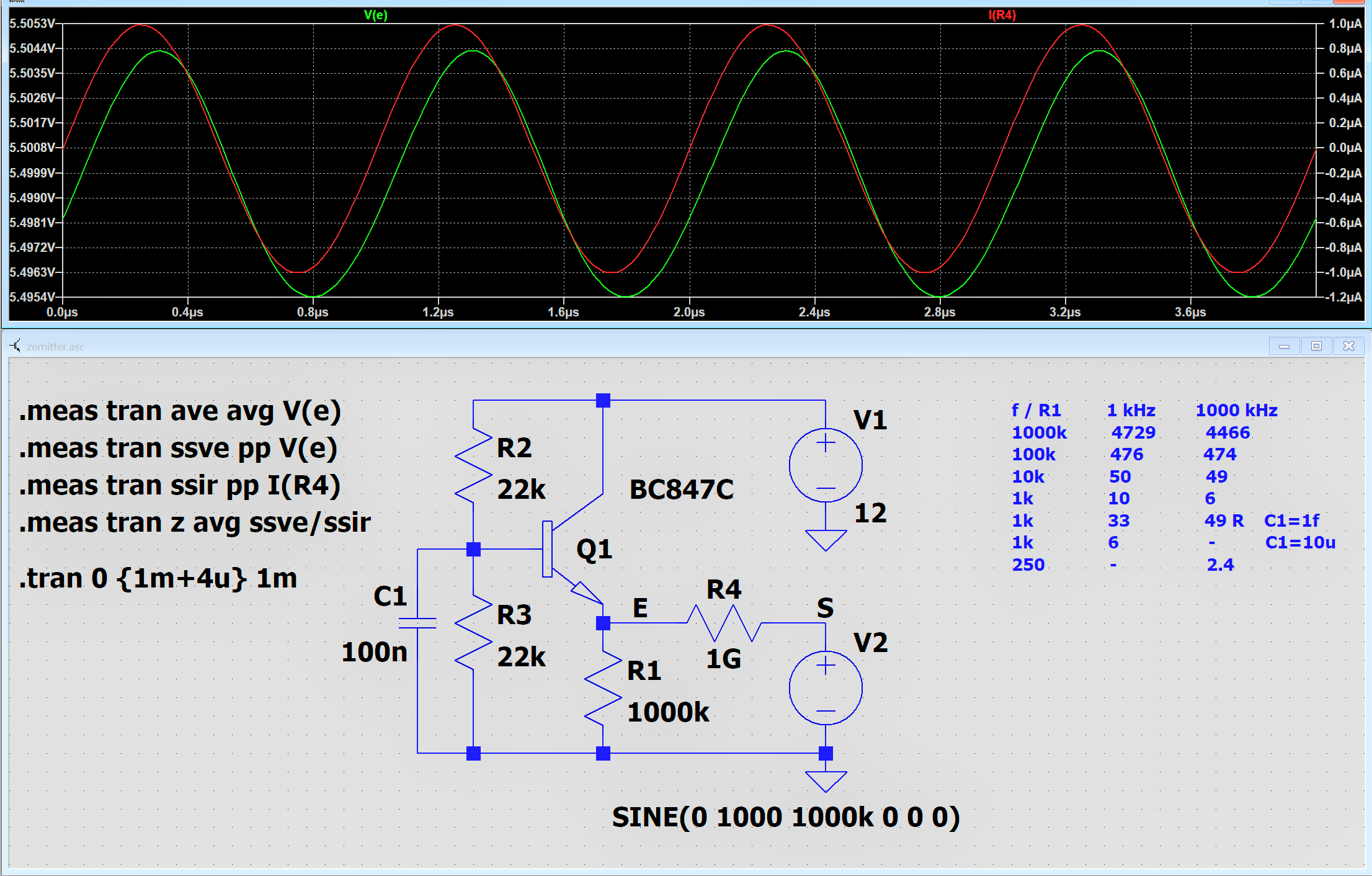 Dadurch verändert sich ziemlich linear und über einen großen Bereich die Impedanz am Emitter