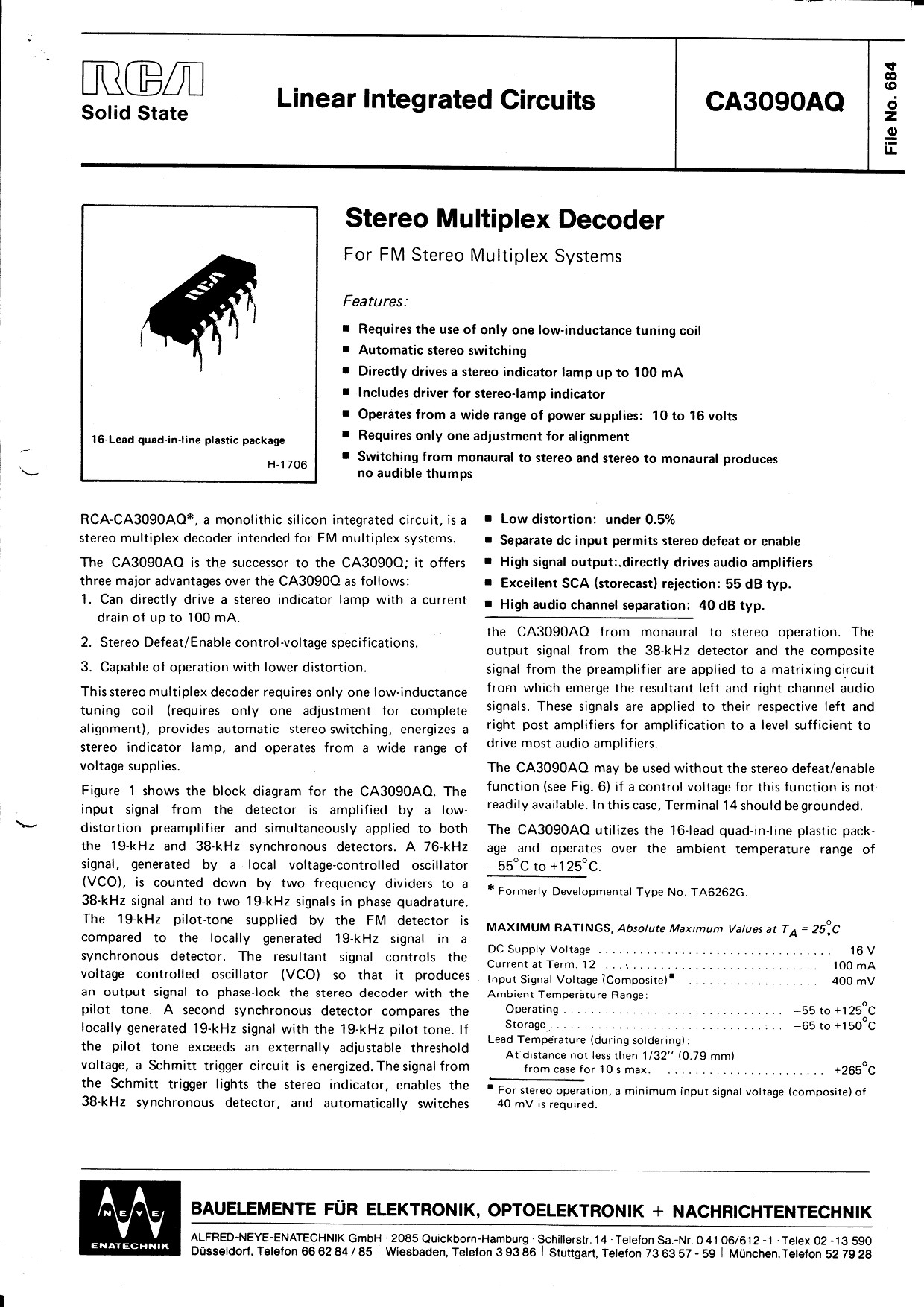 Diese Schaltung mit dem IC CA3090AQ von RCA war in Elektor 1975/7_8 enthalten.