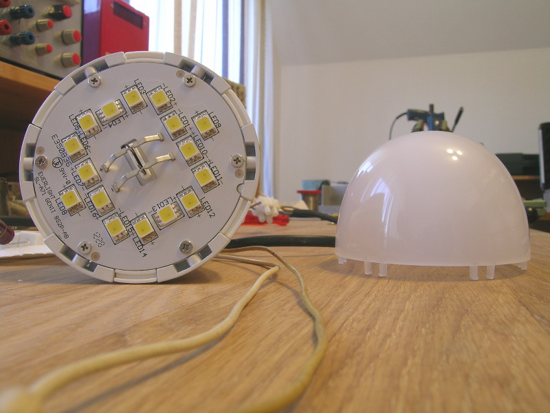 Foto 5: LED-Birne mit abgeschnittenem Zentralrohr: