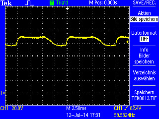 Spannung etwa 85 V arithm. Mittelwert (Strom etwa 170 mA).